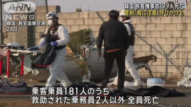 【悲報】韓国空港に胴体着陸した旅客機、尾部にいた乗務員2名を除く179人全員の死亡が確認