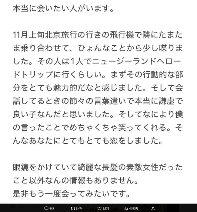 人気お笑い芸人、飛行機で隣に乗った女性探しツイートが波紋「恐怖すぎる」「ストーカーみたい」恐怖を覚えるネットユーザー多数