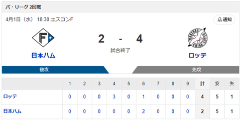 1: ロッテは、日本ハム・細野晴希投手(24)にノーヒットノーランを許し、12三...