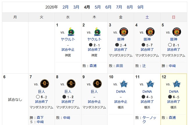 1 : 地味にヤバいか 3 : 中日の影に隠れて 6 : ちな中日でも3勝...