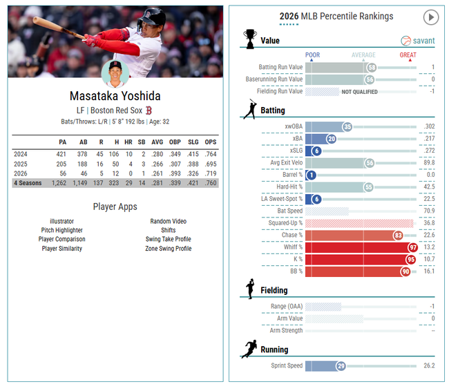 【悲報】吉田正尚さん、56打席立って脅威のバレル率0%を叩き出す