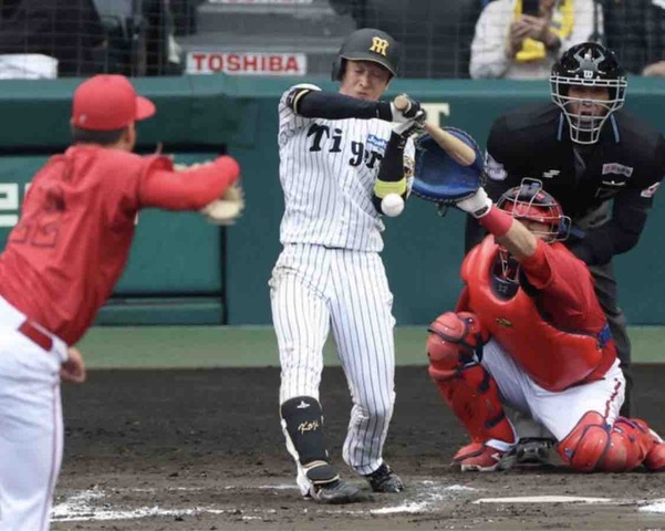 阪神近本、高の死球で手首骨折。カープファン謝罪。