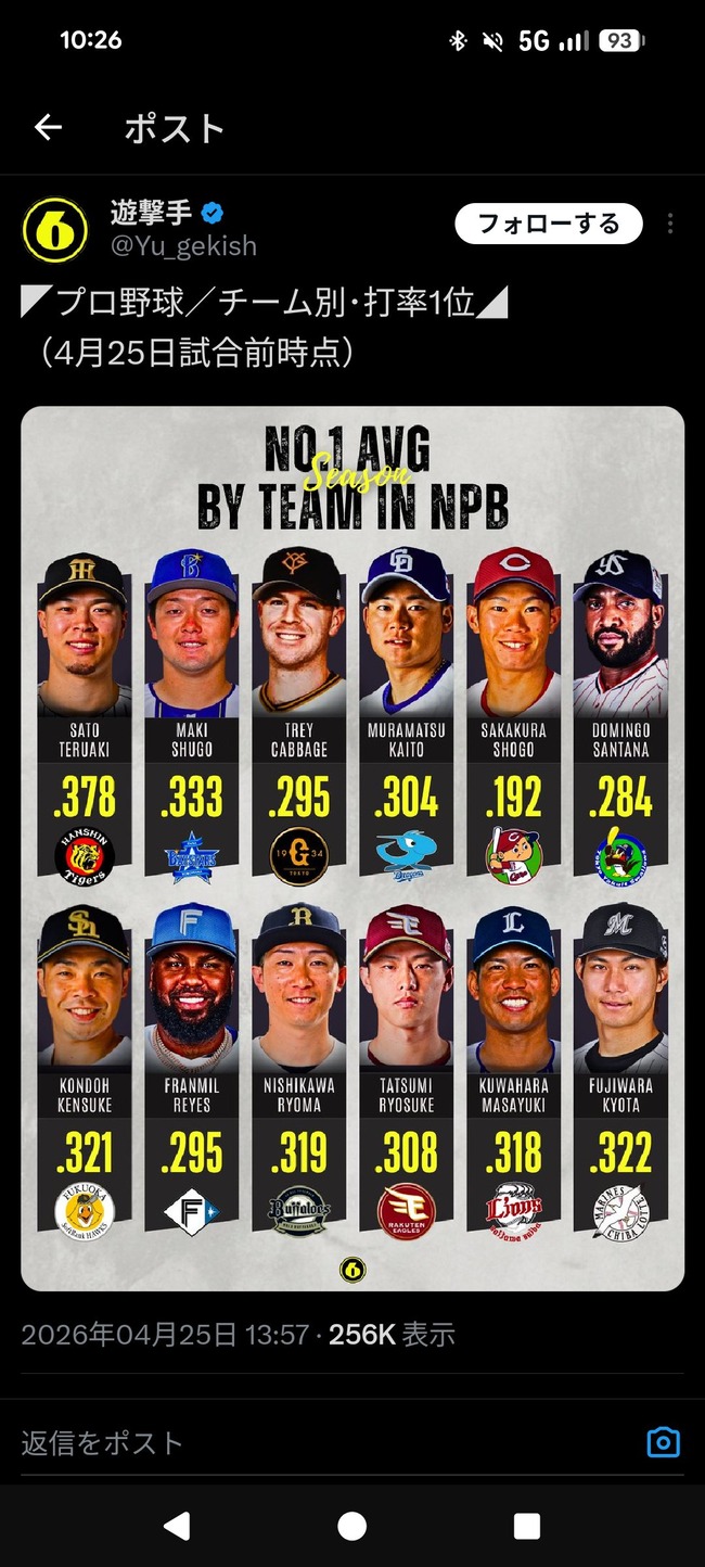 1: 2: 熾烈なチーム首位打者争いやぞ